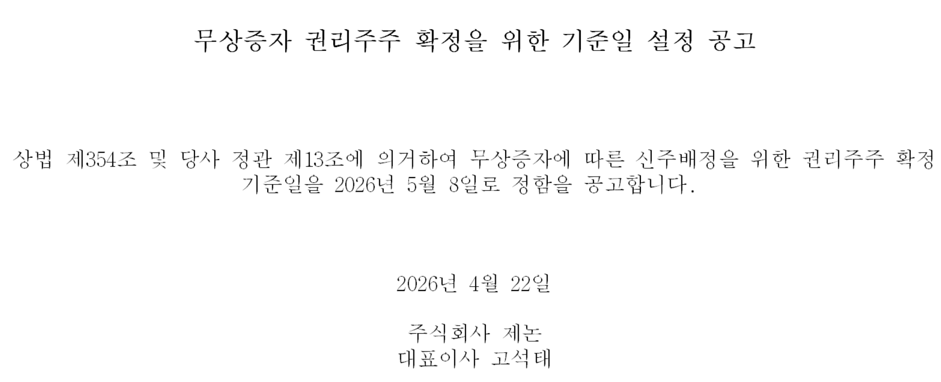 임시주주총회 기준일 설정 공고